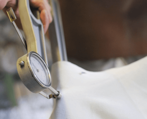 L’operazione conclusiva del processo è la misurazione. Le pelli finite vengono commercializzate in base alla superficie, che viene espressa in metri quadri, anche se resta ancora in uso la misura tradizionale in piedi quadrati (pq). Il cuoio suola è, invece, venduto a peso, calcolato in chilogrammi.